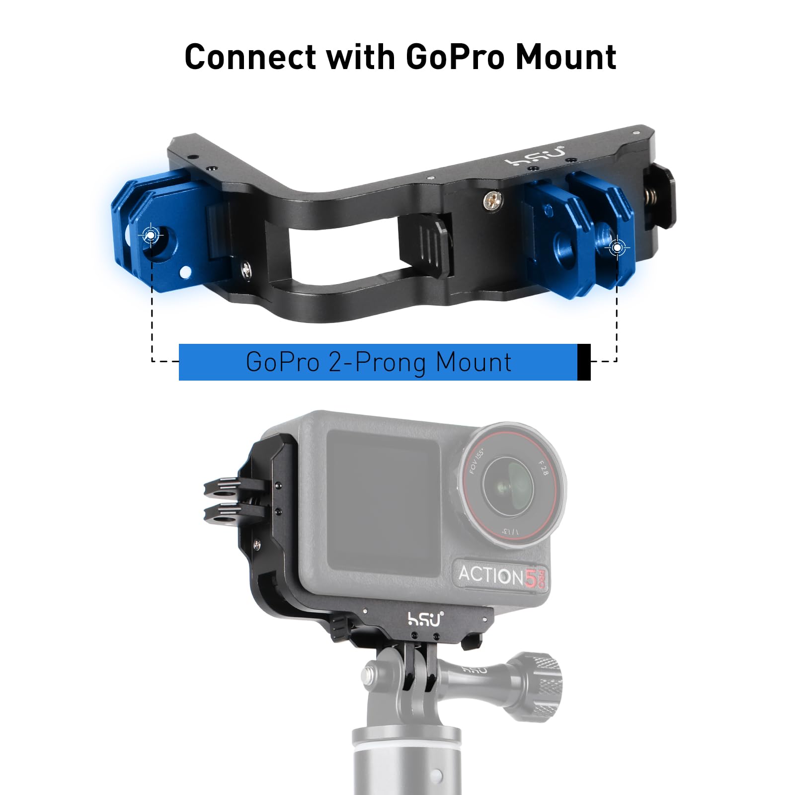 HSU 90 Degree Aluminum Vertical Bracket Adapter Elbow Mount for DJI Osmo Action 3/4/5 Pro, Magnetic Latch Adapter with 1/4"-20 Screw Hole and GoPro Mount—