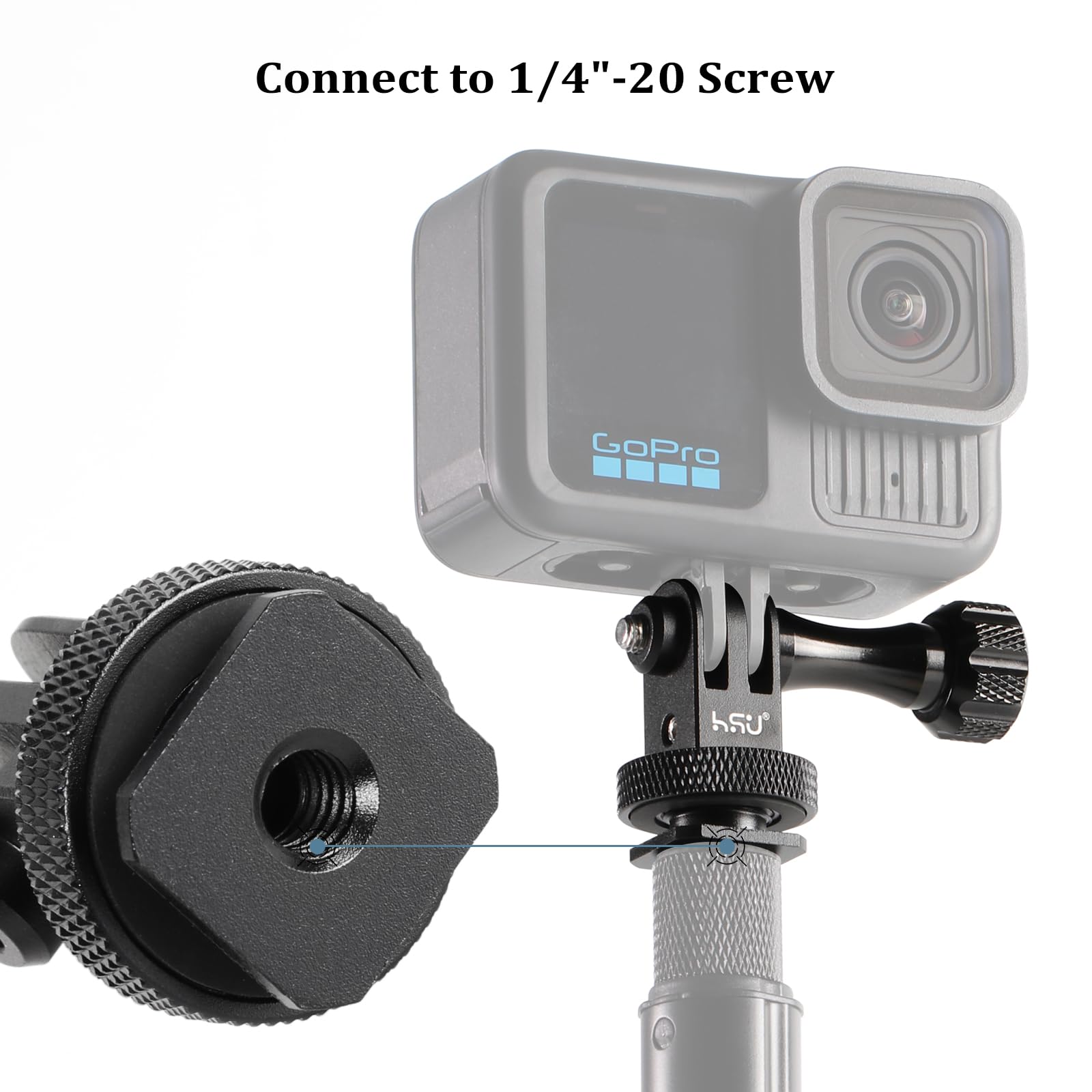 HSU Aluminum Cold Shoe Mount Adapter, 1/4-20 screw hole Tripod Mount Adapter for GoPro Hero 13/12/11/10/9/8/7/6, DJI Osmo Action AKASO, Applicable for Tripod Selfie Stick Monopod and DSLR Camera Flash