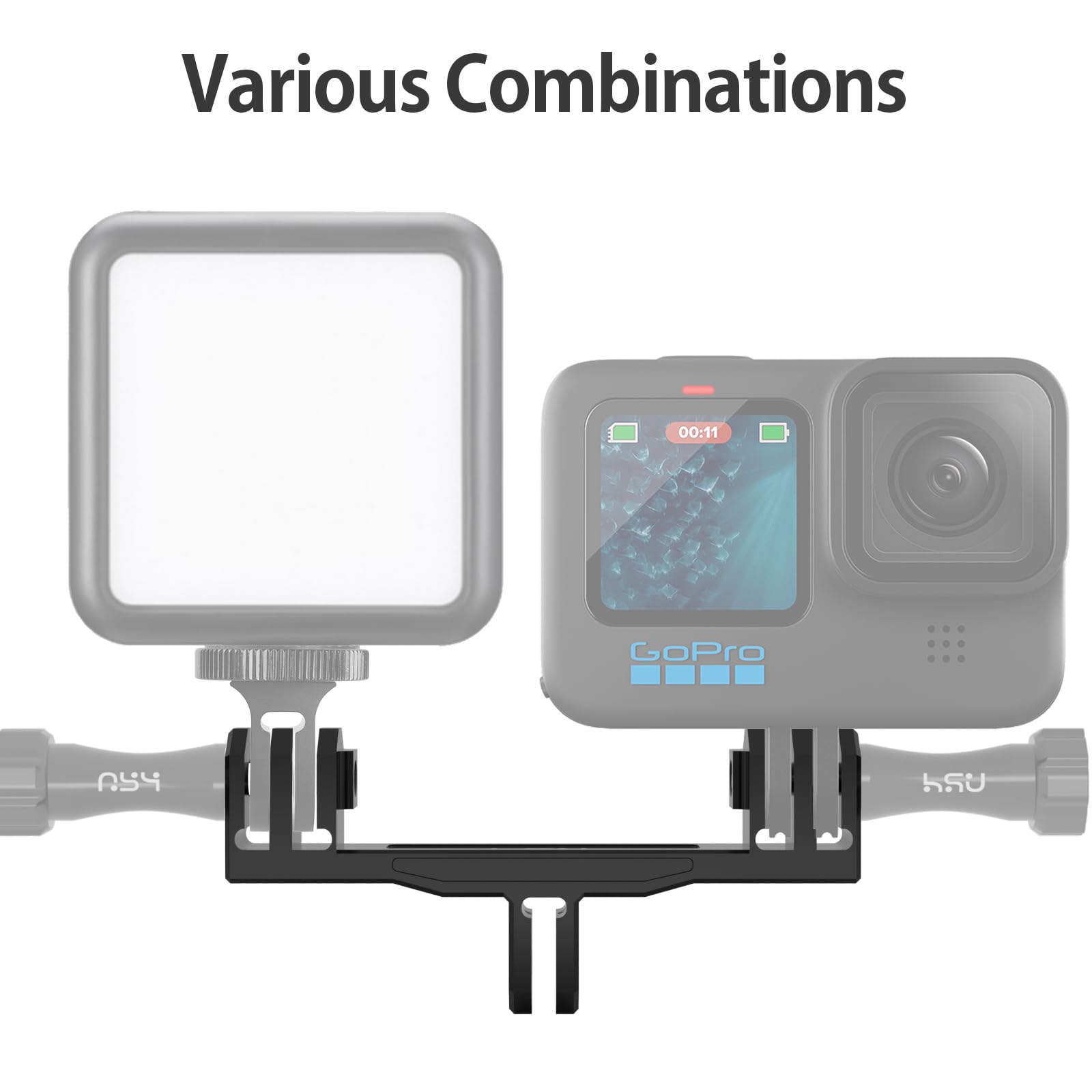 - Multi-Purpose: In addition to being able to mount two sports cameras at the same time, it also supports other different pairings, such as camera and fill-in light, microphone, etc., so that you can get the perfect shot in different environments