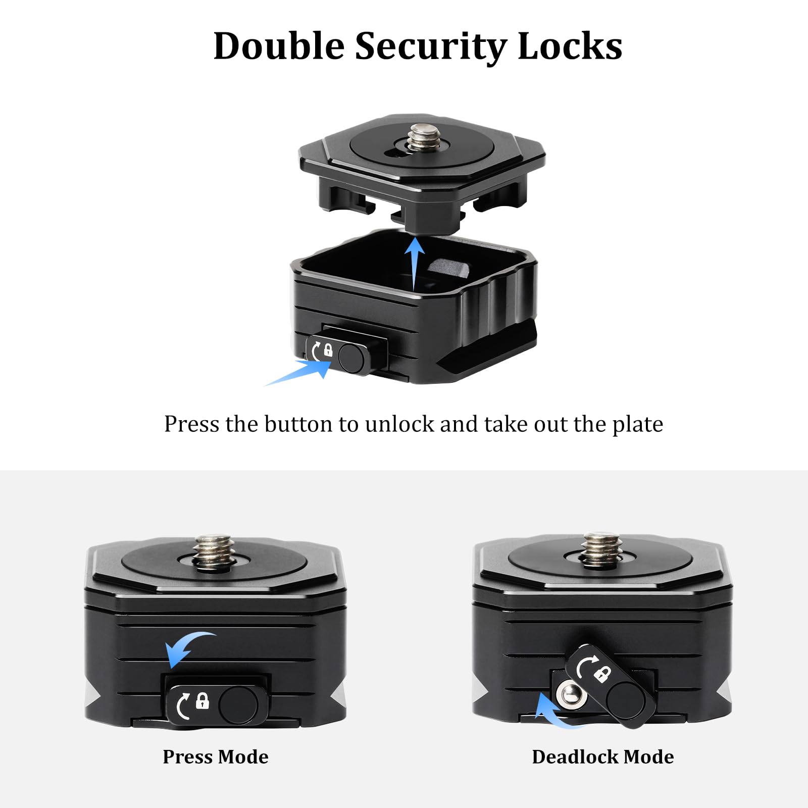 - Sturdy & Lightweight Construction: The quick release plate is made of high-quality aluminum alloy, rustproof, rugged and durable, lightweight and stable, it weighs only 56 grams. Max load 11lb/5kg