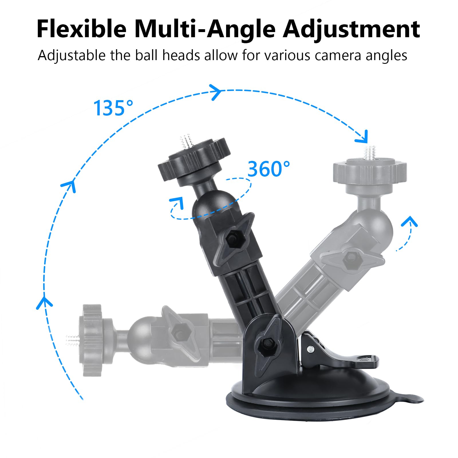- For Action Camera: Equipped with 1/4"- 20 camera mount and tripod mount adapter. The suction cup mount is compatible with all GoPro models, GoPro Hero 13 12 11 10 9 8 7 6 5 GoPro Max Insta360 DJI Osmo Action Pocket AKASO, and most action cameras
