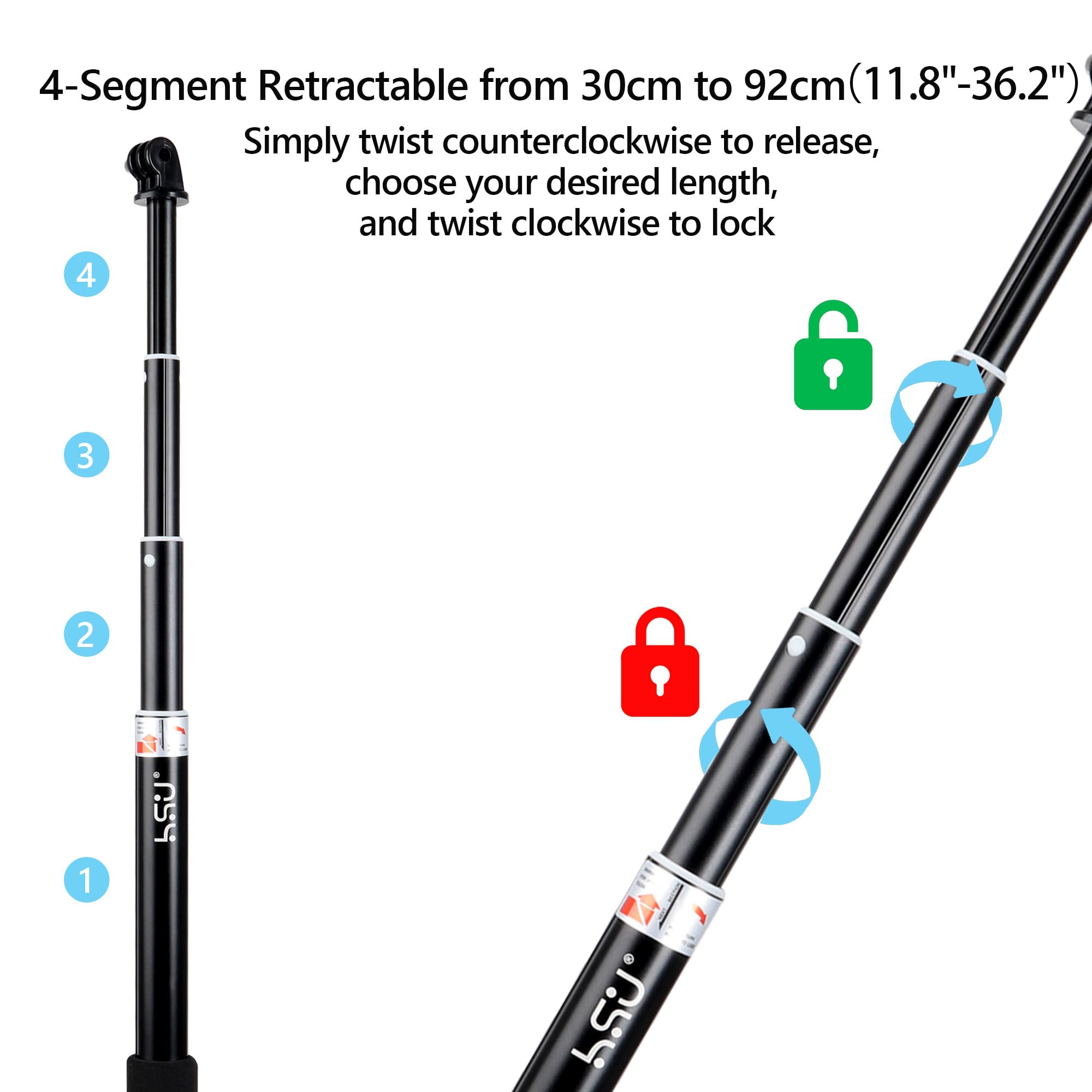 HSU Extendable Selfie Stick for Action Camera, Waterproof Hand Grip for GoPro Hero 13/12/11/10/9/8/7, Handheld Monopod 11.8" to 36.2" for Cell Phones AKASO Insta360 X4 X3 and Other Action Cameras